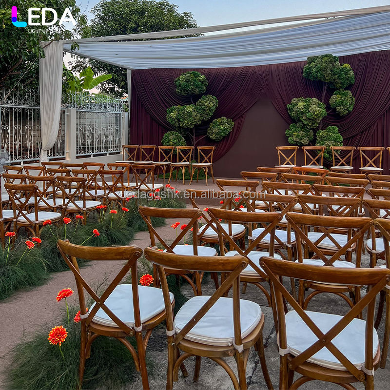 เก้าอี้ไม้กลางแจ้ง LEDA สำหรับชายหาด สวน ระเบียง พนักพิงไขว้ ทำจากไม้เนื้อแข็ง เหมาะสำหรับงานแต่งงาน งานเลี้ยง