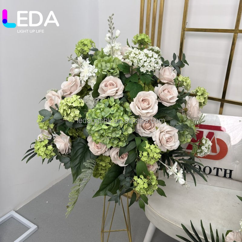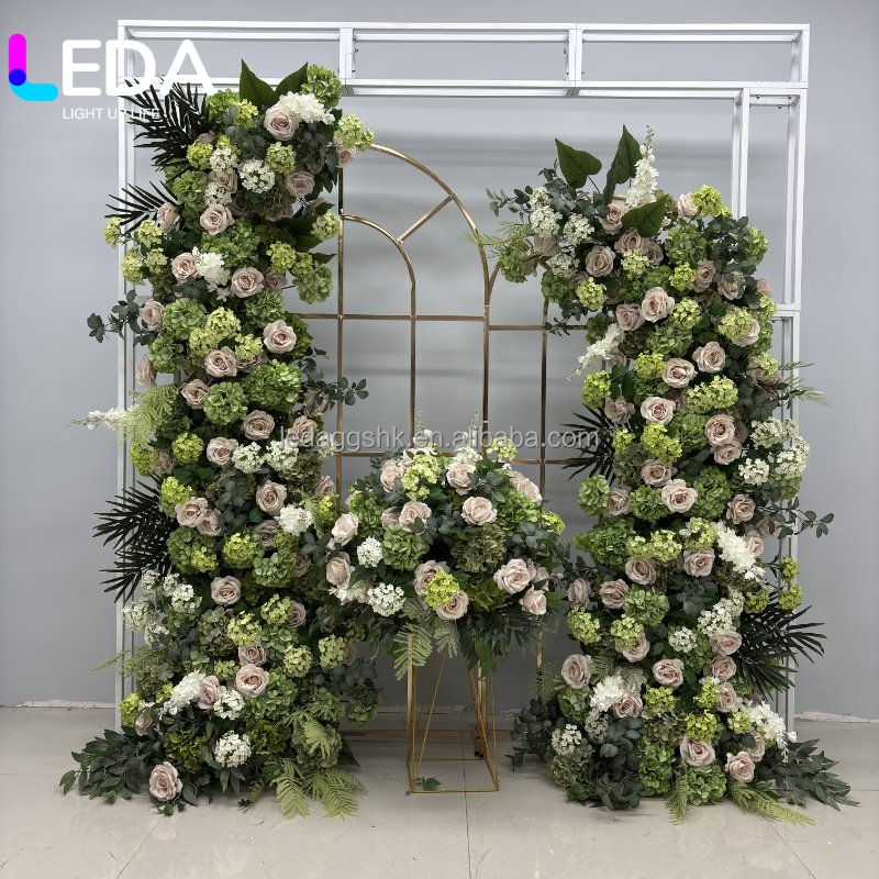 ของตกแต่งงานปาร์ตี้ LEDA ดอกไม้ประดิษฐ์สีเขียว ดอกไฮเดรนเยีย กุหลาบ ดอกฮอร์นฟลาวเวอร์ ซุ้มดอกไม้ ซุ้มแต่งงาน