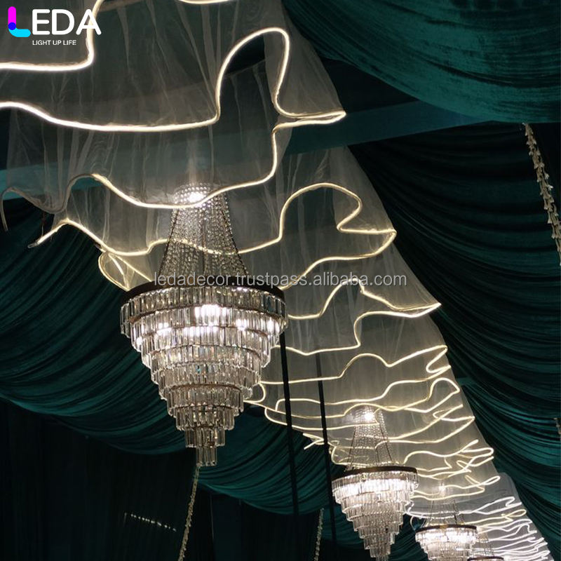 Leda อุปกรณ์ตกแต่งห้องจัดงานแต่งงานม่านแขวนม่านผ้าไฟดอกไม้ตกแต่งเพดาน LED
