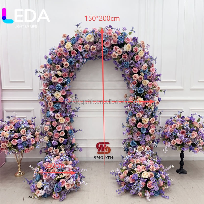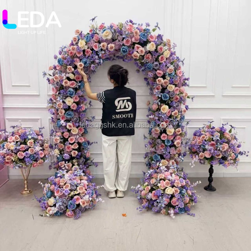 การจัดดอกไม้กุหลาบสีชมพูม่วง LEDA แบบสองด้าน สำหรับตกแต่งซุ้มงานแต่งงาน ฉากหลังดอกไม้สำหรับตกแต่งทางเดินและประตู
