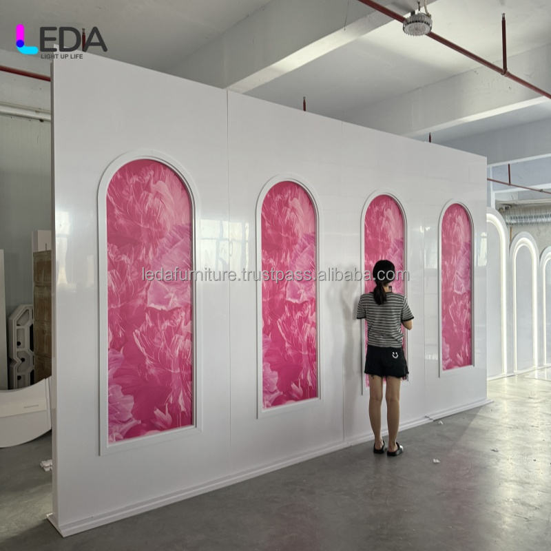 Leda ซุ้มแต่งงานสีชมพูหรูหรายอดนิยมฉากหลังสีทองตกแต่งปรับได้สำหรับงานแต่งงาน