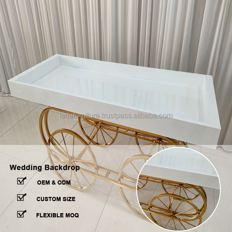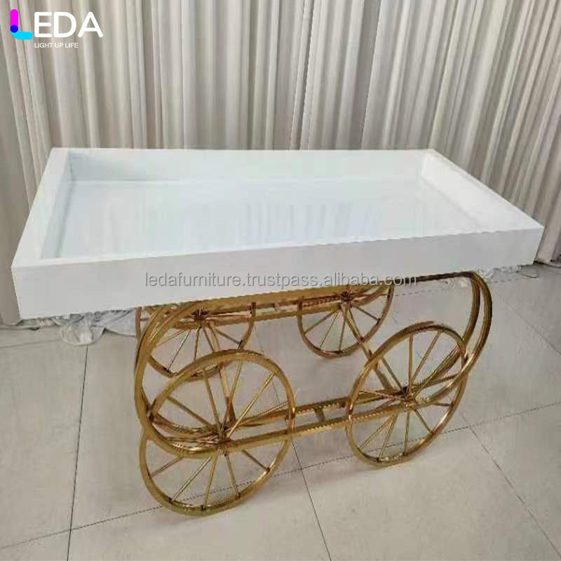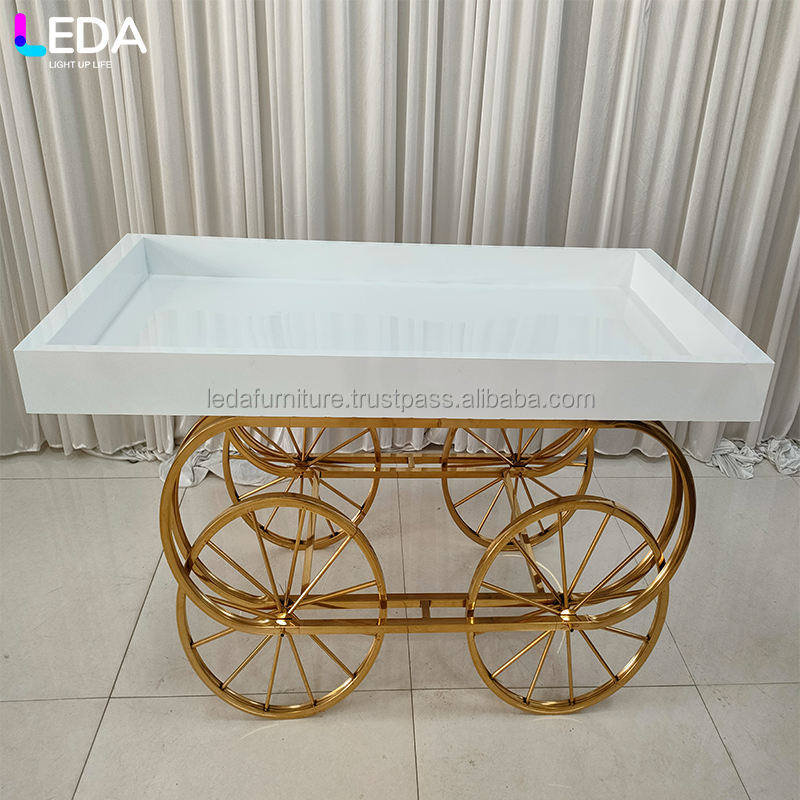 LEDA Professional Modern Gold-Framed Hand-Pushed Cart for Wedding Display Flowers Decorations