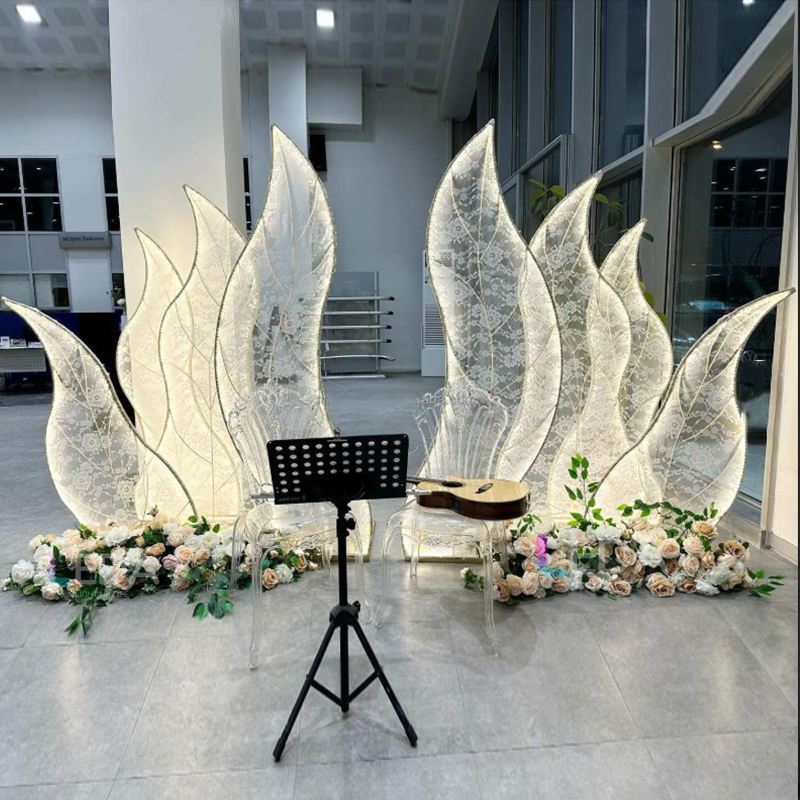 ฉากหลังงานแต่งงานรูปเปลวไฟ LEDA S พร้อมไฟเส้นตาข่ายและฉากหลังลายสาหร่ายน้ำสำหรับตกแต่งงานปาร์ตี้