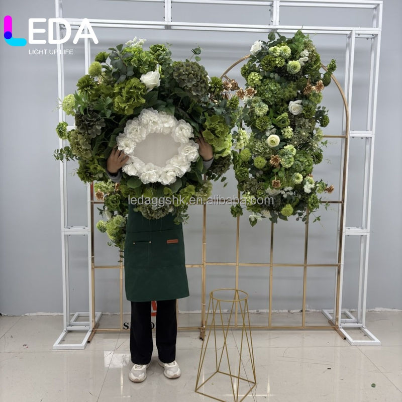 พรมดอกไม้ประดิษฐ์ LEDA สีเขียวยูคาลิปตัส ประดับด้วยดอกกุหลาบสีขาว สำหรับตกแต่งโต๊ะ