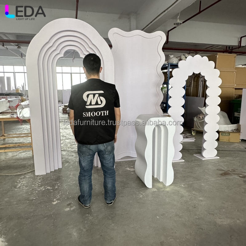 ฉากหลังงานแต่งงาน LEDA ผนังดอกไม้ประดิษฐ์จากผ้าไหมสีขาวสำหรับงานแต่งงาน