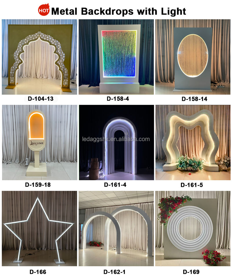 ป้ายต้อนรับงานแต่งงาน LEDA ดีไซน์ทันสมัย ลายโลหะ พร้อมเอฟเฟกต์น้ำตก ฉากหลังเรืองแสง ประดับดอกไม้ สำหรับตกแต่งทางเข้างานเลี้ยงต้อนรับ
