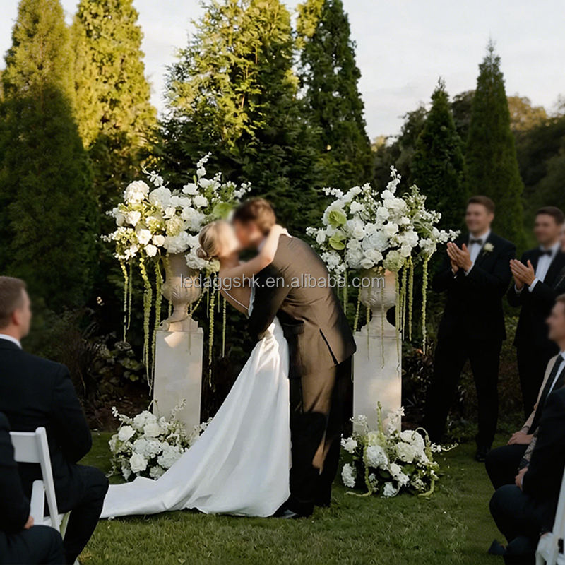 LEDA ช่อดอกไม้ประดิษฐ์ทำมือจากผ้าไหมสำหรับงานแต่งงาน ตกแต่งด้วยใบไม้สีเขียว ช่อดอกกุหลาบผสม ตกแต่งเวที