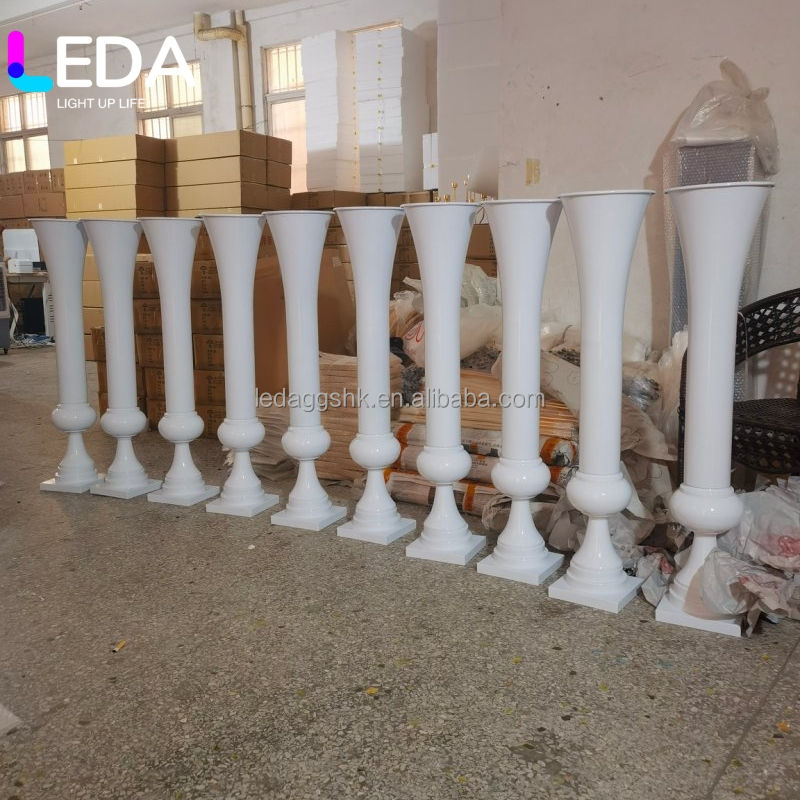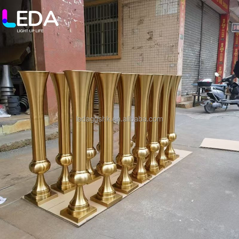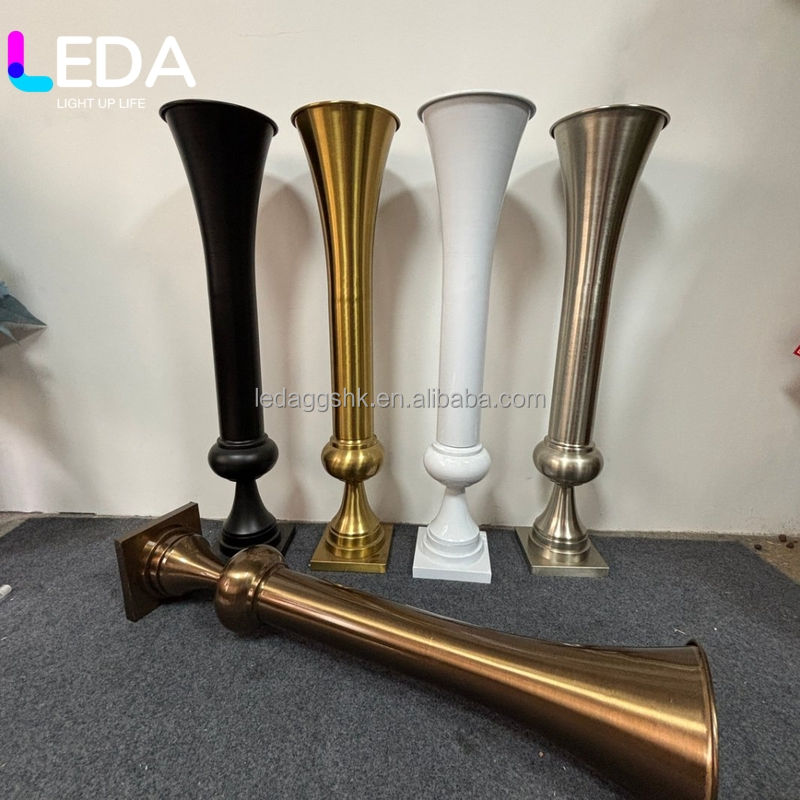 แจกันดอกไม้โลหะหรูหรา LEDA ขายส่ง สีทอง เงิน ขาว ดำ รูปทรงแจกัน ตกแต่งโต๊ะงานแต่งงาน สวยงามสง่างาม