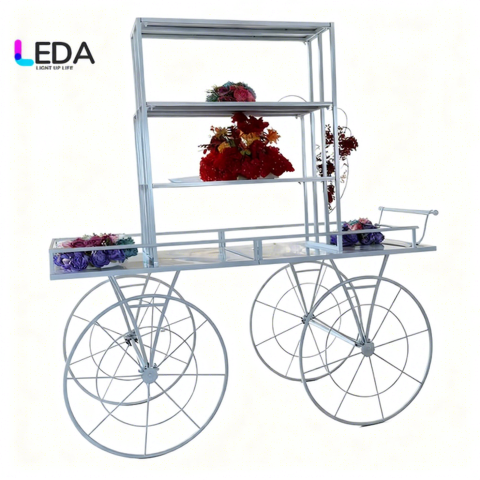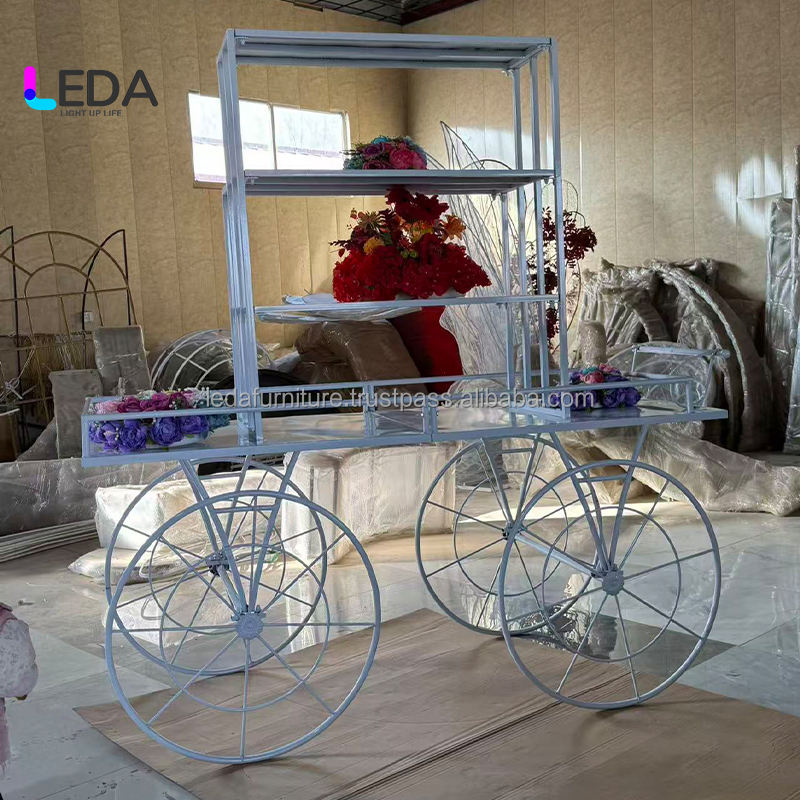 รถเข็นขนมหวานเหล็กสไตล์โมเดิร์นอเนกประสงค์ลายดอกไม้แบบพกพาสำหรับงานปาร์ตี้และตกแต่ง