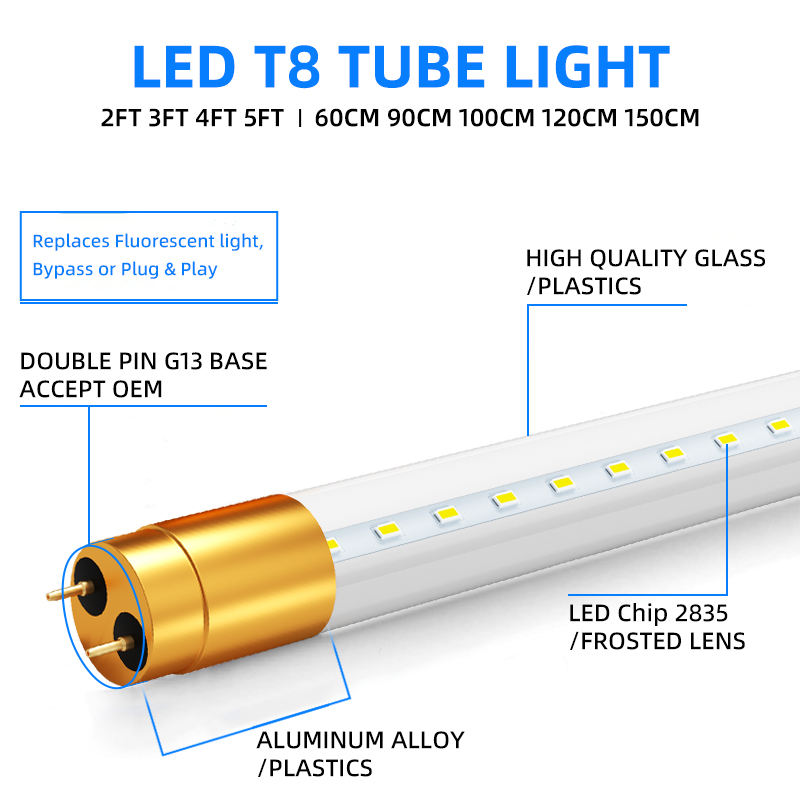 หลอดไฟ LED แบบหลอดแก้ว LEDFORA T8 ขนาด 2-5 ฟุต 40W/20W/18W ประสิทธิภาพสูง สำหรับคลังสินค้า โครงอะลูมิเนียม ระดับการป้องกันน้ำ IP44 รับประกัน 3-5 ปี