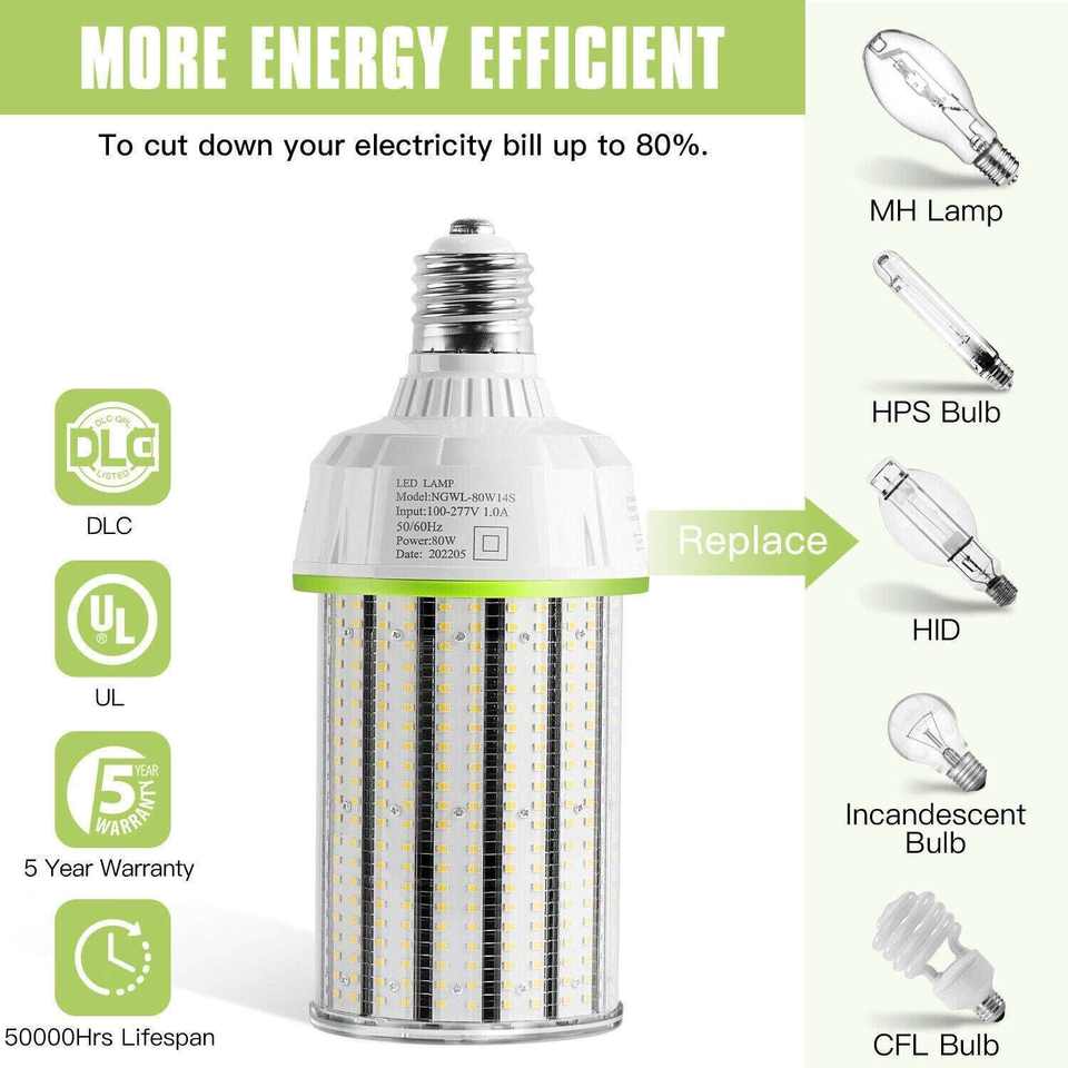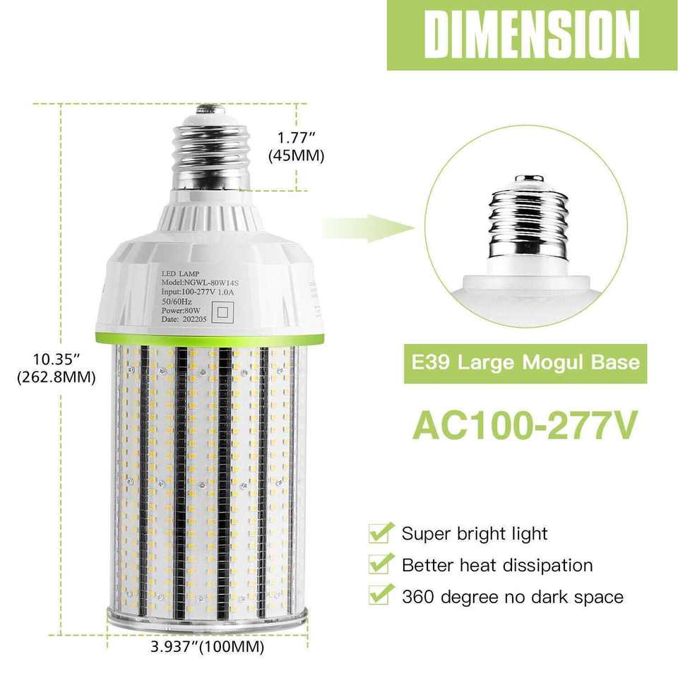 ไฟ LED ขายส่ง หลอดไฟ LED คอร์นคอบ 80W 5000K แสงเดย์ไลท์ 12000 ลูเมน ขั้ว E39 แบบโมกุล จัดส่งด้วยมือ ติดตามการจัดส่งผ่าน Shopify ได้