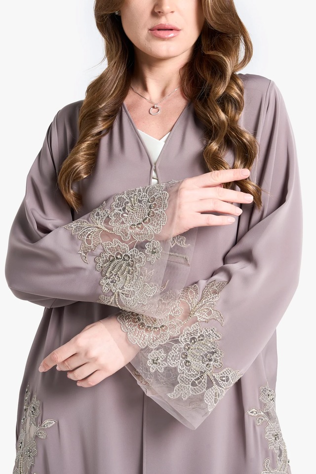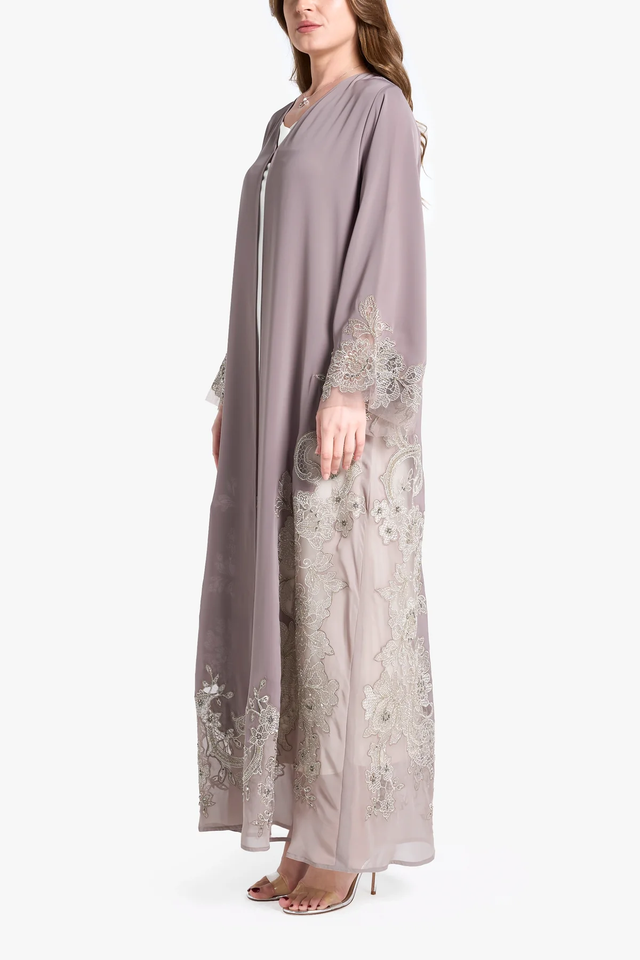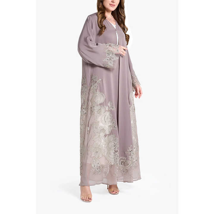 LEDUO ชุดอาบายะแบบเปิดสไตล์วินเทจลำลองสำหรับผู้หญิง ตกแต่งด้วยลูกไม้ปักลายผ้าชีฟองคุณภาพสูงสำหรับเดือนรอมฎอน