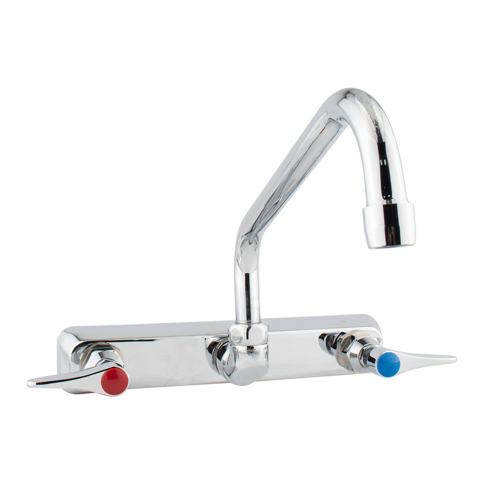 ก๊อกน้ำทองเหลืองติดผนังสำหรับครัวร้านอาหาร ได้รับการรับรองมาตรฐาน LEED เป็นมิตรกับสิ่งแวดล้อม แบบผสมน้ำร้อนน้ำเย็น รูติดตั้งสองรู