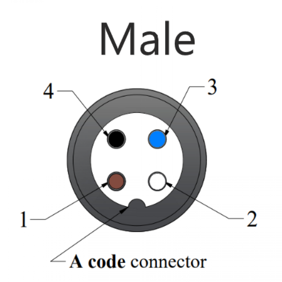 Product name:M12 Male Straight A code 4 pin Pvc Unshielded 4x0.34 3 mtr Black