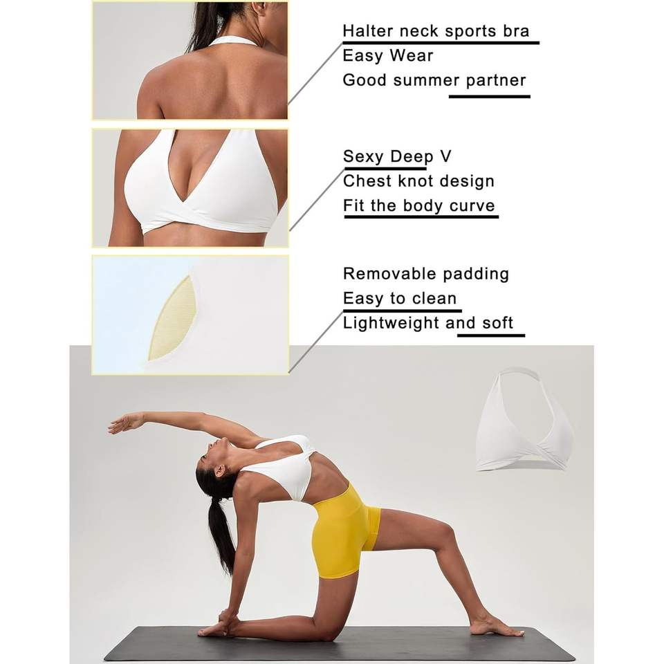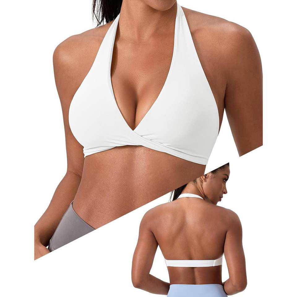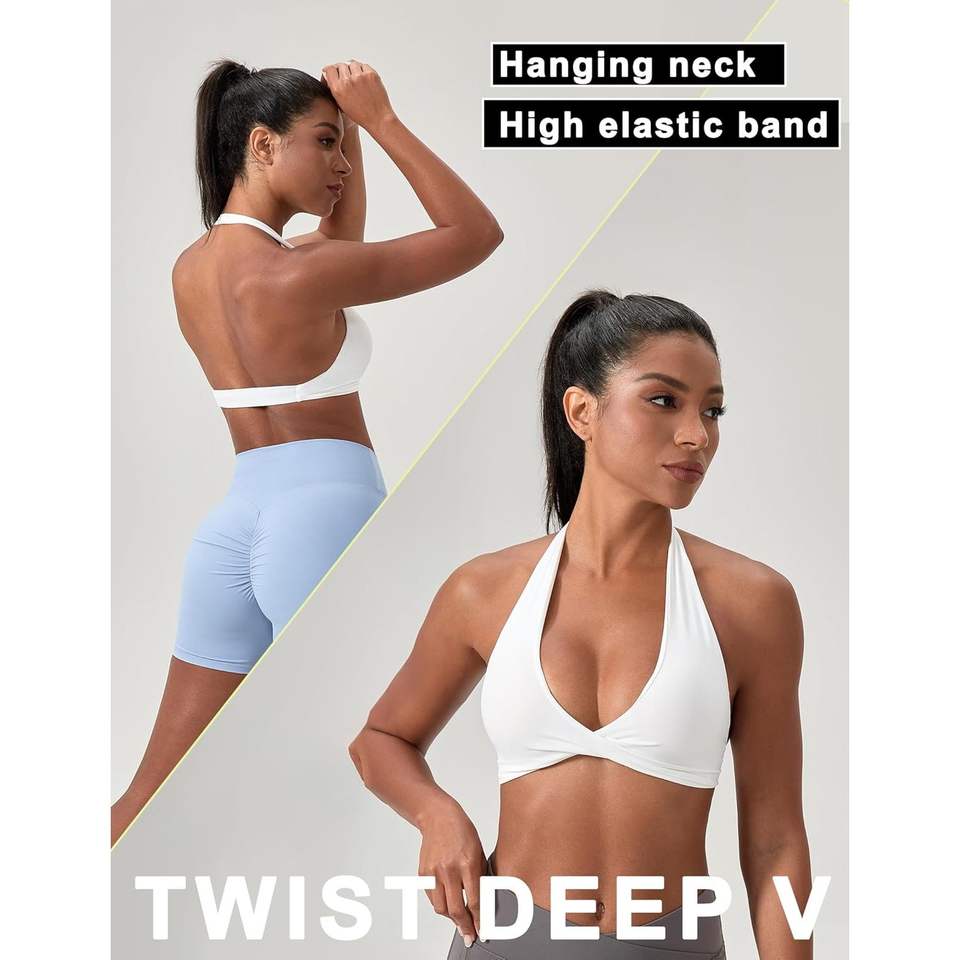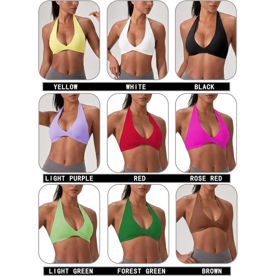 Premium Women's Seamless Sports Bras Halter Bra Front Twist Crop Workout Tops Yoga Backless Bra Removeable Pads Strappy XS Size