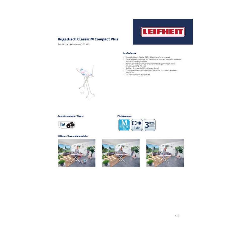Leifheit bügeltisch CLASSIC M PLUS 120x38cm