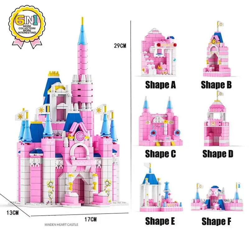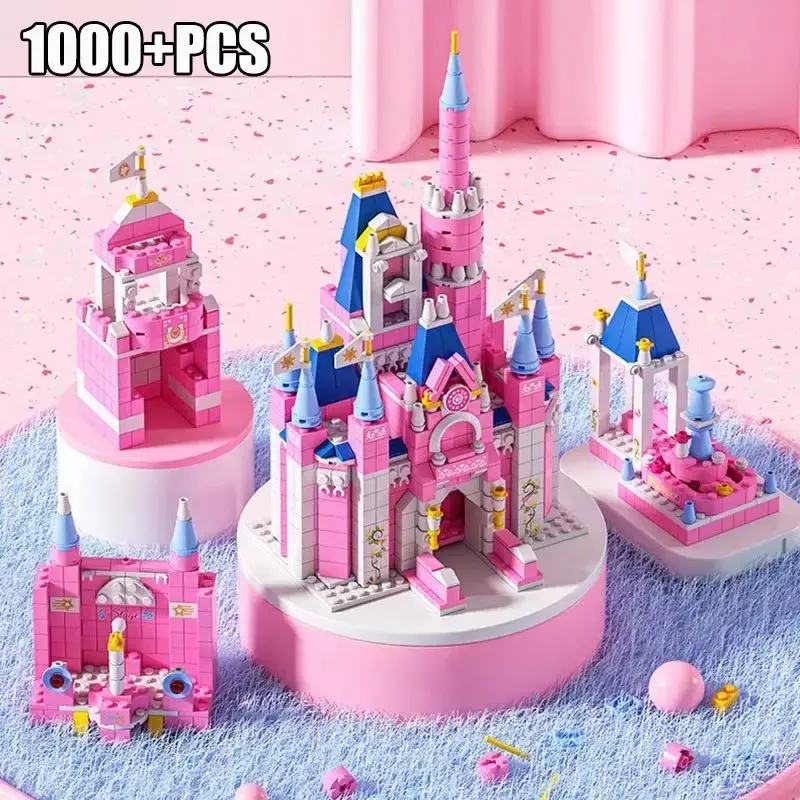LELE BROTHER ชุดตัวต่อ 1000 ชิ้น 6 in 1 ปราสาท เมือง บ้าน วิลล่า พระราชวังสีชมพู ชุดตัวต่อ DIY ของเล่นประกอบบล็อก