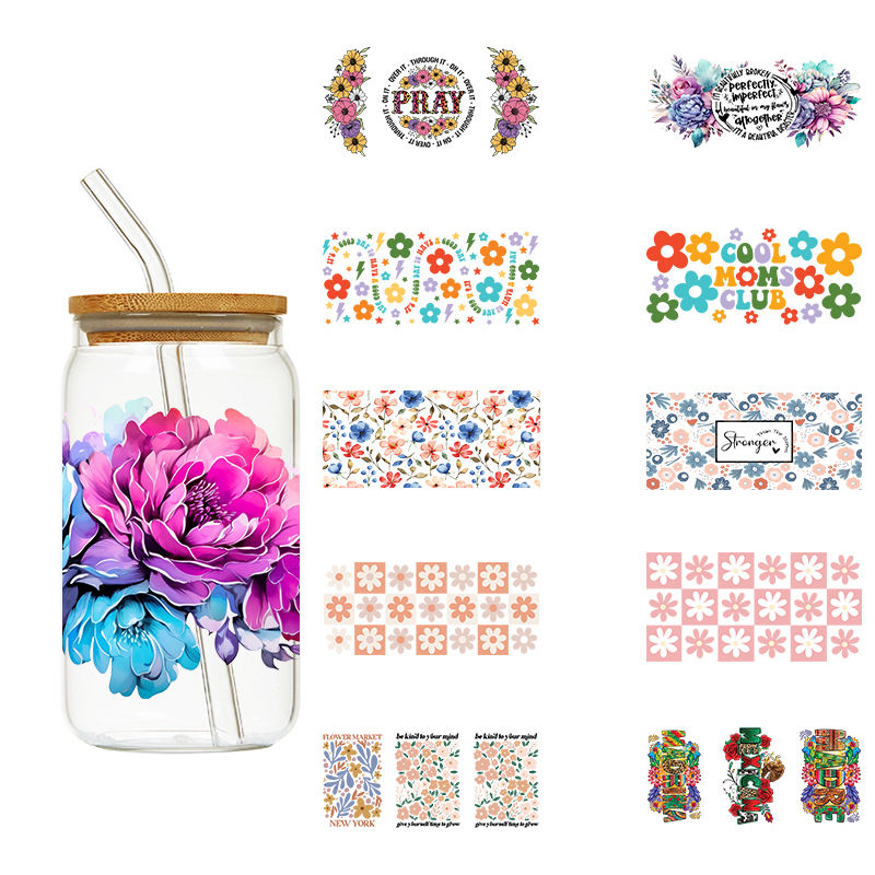 Letop กระดาษห่อสำหรับครูถ้วยพิมพ์ข้อความผึ้งสีน้ำเป็นมิตรกับสิ่งแวดล้อม1ชิ้นกระดาษห่อ DTV 16ออนซ์เลิฟมาม่า UV สำหรับถ้วย DTF