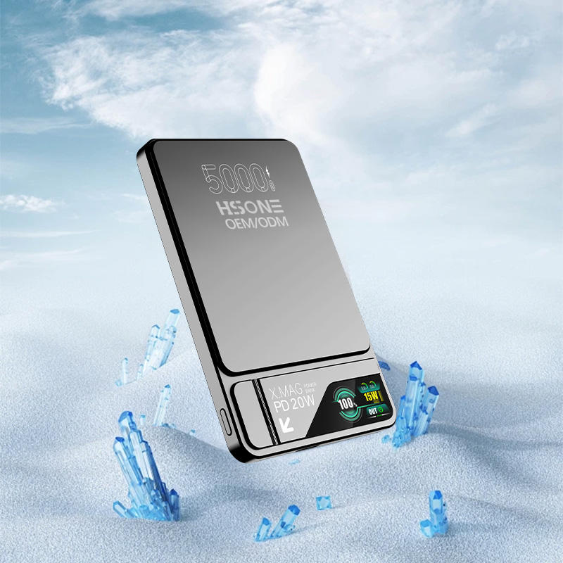 พาวเวอร์แบงค์แม่เหล็กไร้สาย LF17 พร้อมระบบชาร์จเร็ว 15W ตัวเครื่องบางเฉียบทำจากอลูมิเนียมอัลลอยด์ หน้าจอ TFT พร้อมขาตั้งในตัว ความจุสูง