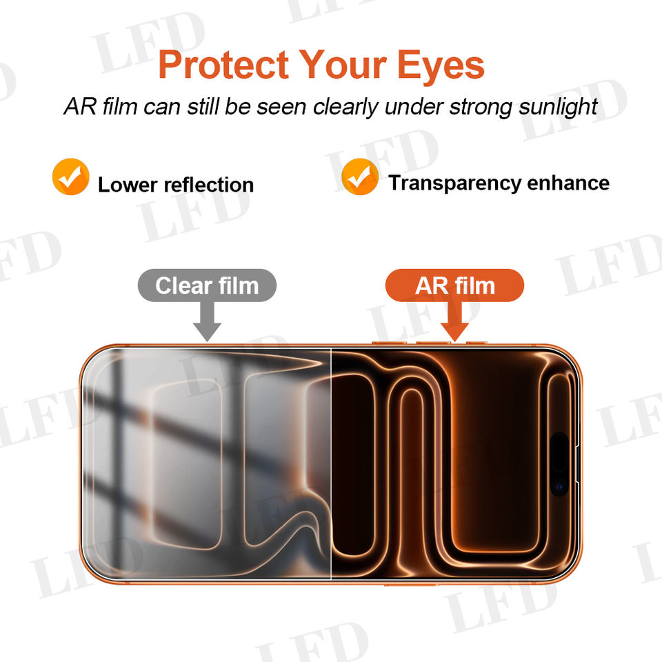 ฟิล์มกันรอยกระจก LFD 01 ป้องกันแสงสะท้อน (AR) ป้องกันรอยนิ้วมือ (AF) สำหรับ iPhone 11 12 13 14 15 16 17 Pro Max