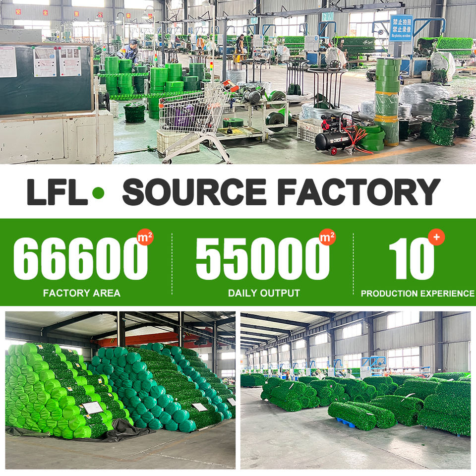 LFL รั้วหญ้าเทียมสีเขียวในร่มสนามหลังบ้านสนามเด็กเล่นทำจาก PP