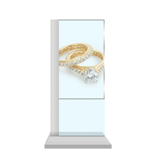 LG หน้าจอ OLED แบบตั้งพื้นป้ายดิจิทัลขนาด55นิ้วสำหรับแสดงโฆษณาตู้แสดง OLED แบบโปร่งใส