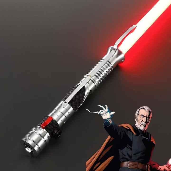 ไลท์เซเบอร์แบบตรงรุ่นใหม่ของ LGT ราคาประหยัด คุณภาพดี ลายเคาน์ต์ดุคู ชุบโลหะสีเงิน RGB พร้อมระบบ Smooth Swing สำหรับคอสเพลย์