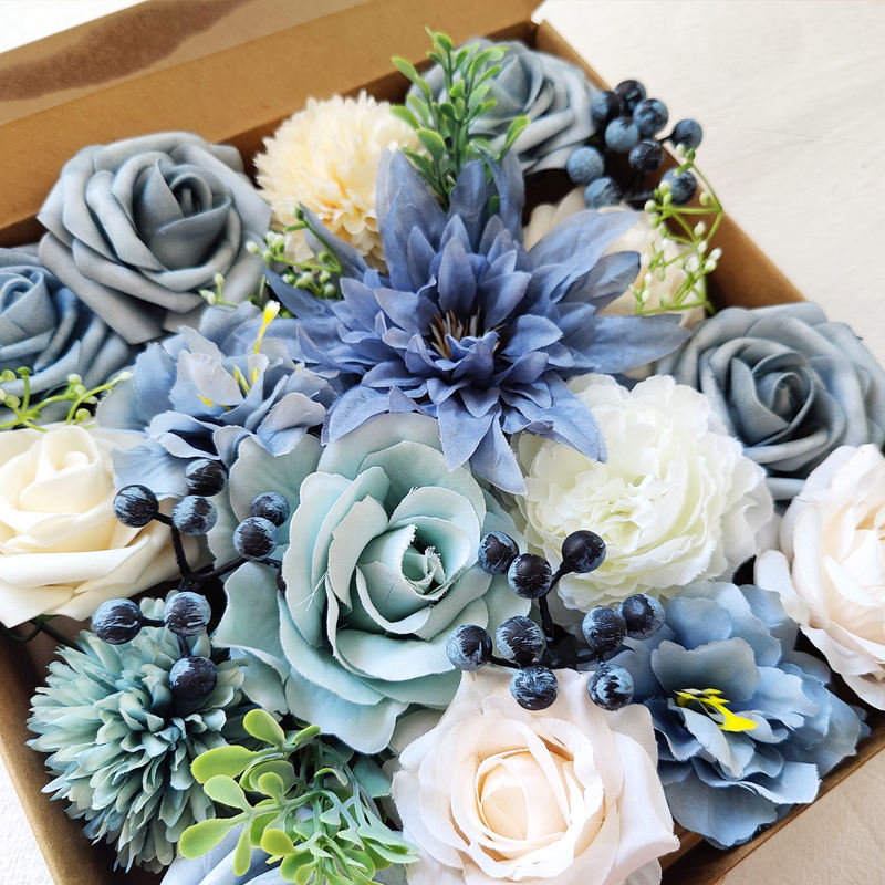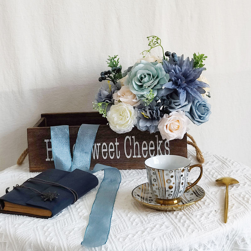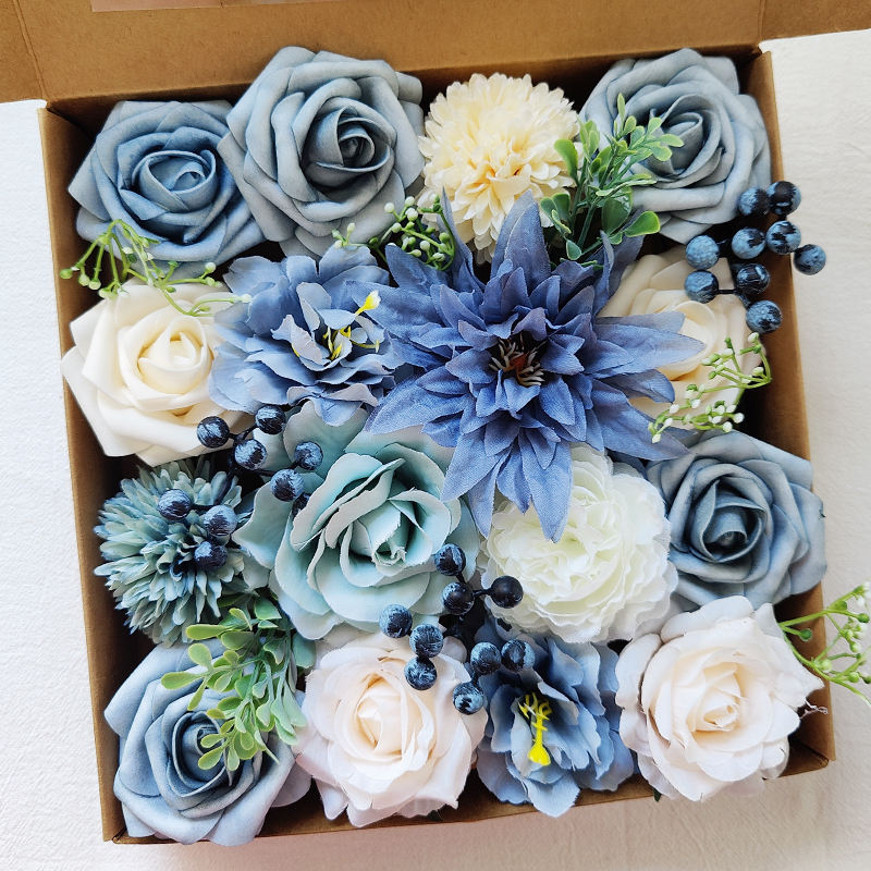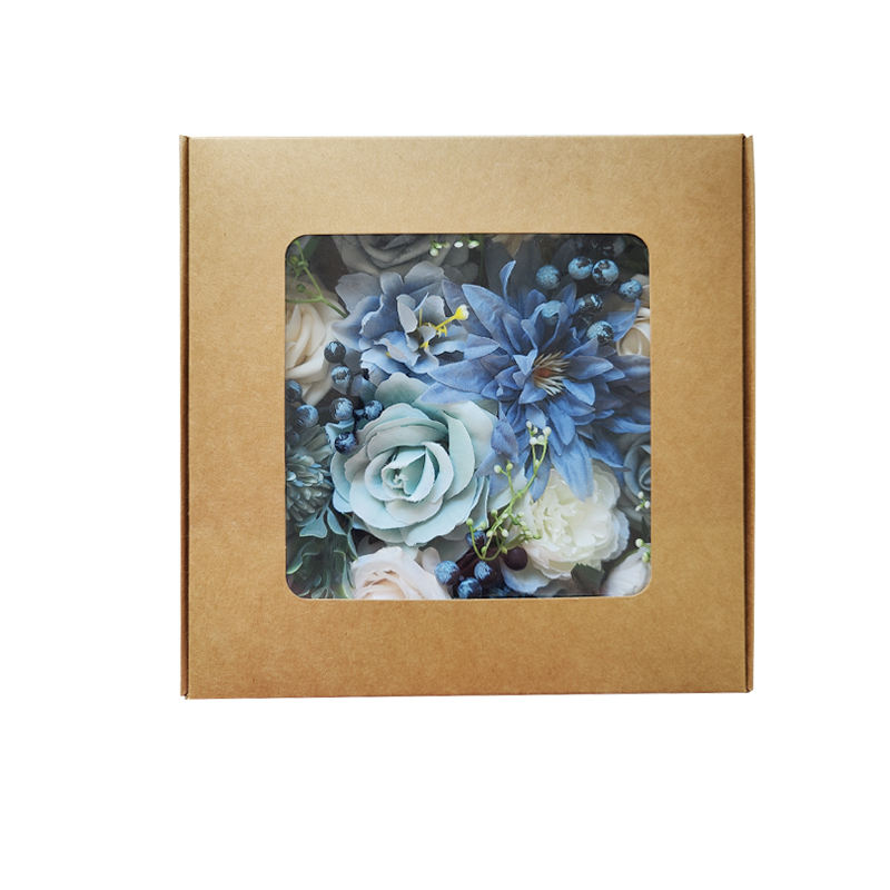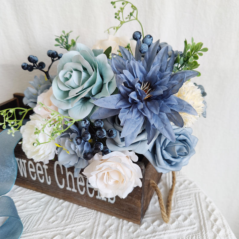 ชุดกล่องดอกไม้ทำมือคุณภาพสูง LH025 แจกันดอกไม้สีฟ้าสำหรับวันรับปริญญา วันแม่ อีสเตอร์ คริสต์มาส