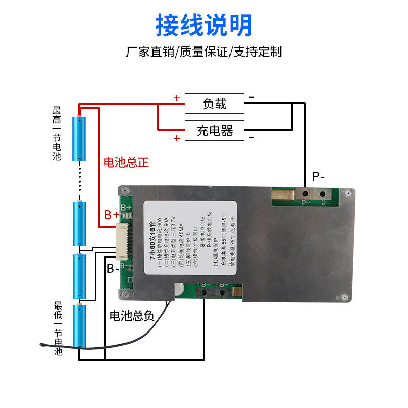 Li-ion 6S 7S 24V 50A 40A 60A สำหรับ3.7V แบตเตอรี่ลิเธียมเทอร์นารี NMC ที่มีความสมดุลและค่าใช้จ่าย NTC คณะกรรมการพอร์ตเดียวกัน