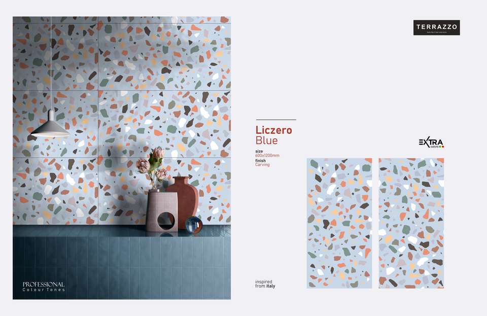กระเบื้องพอร์ซเลนพรีเมียม LICZERO สีน้ำเงินลายเทอร์ราซโซ ผิวสัมผัสแบบแกะสลัก