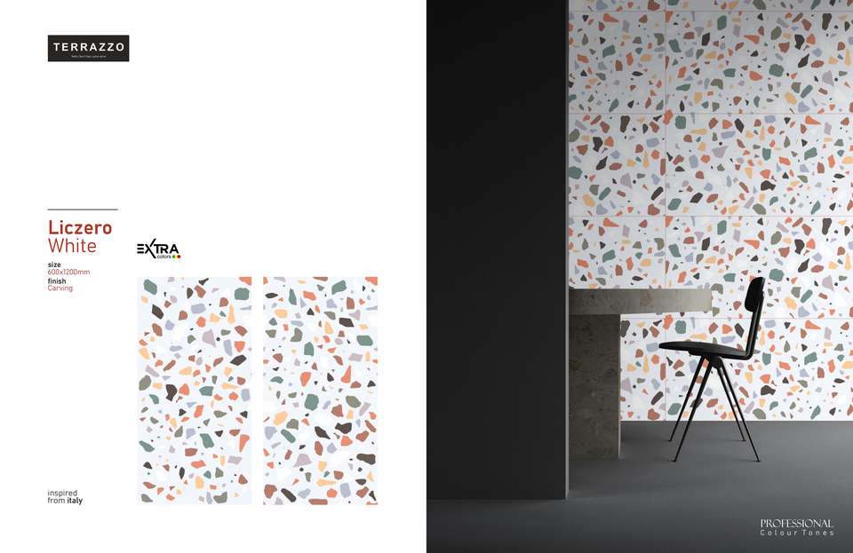 กระเบื้องพอร์ซเลนพรีเมียม LICZERO สีขาวลายเทอร์ราซโซ แบบแกะสลัก
