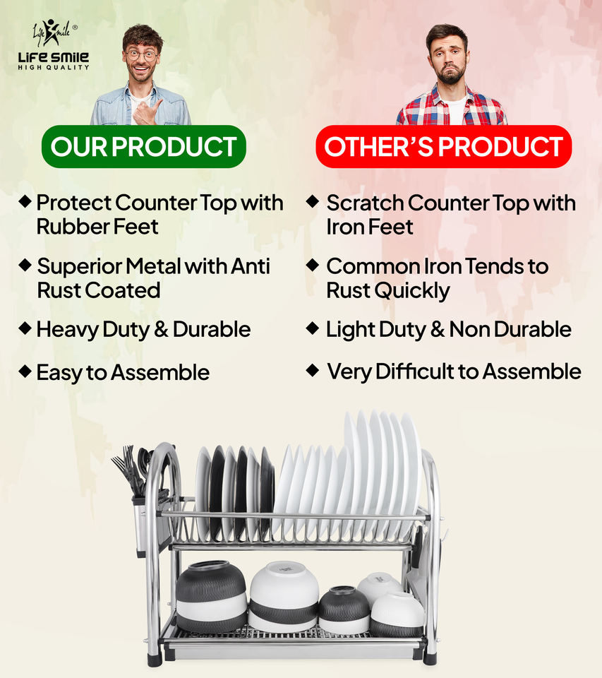 ชั้นวางจานทำจากสเตนเลสสตีล2ชั้นพร้อมที่วางอุปกรณ์ในห้องครัวชั้นวางตากฟัน