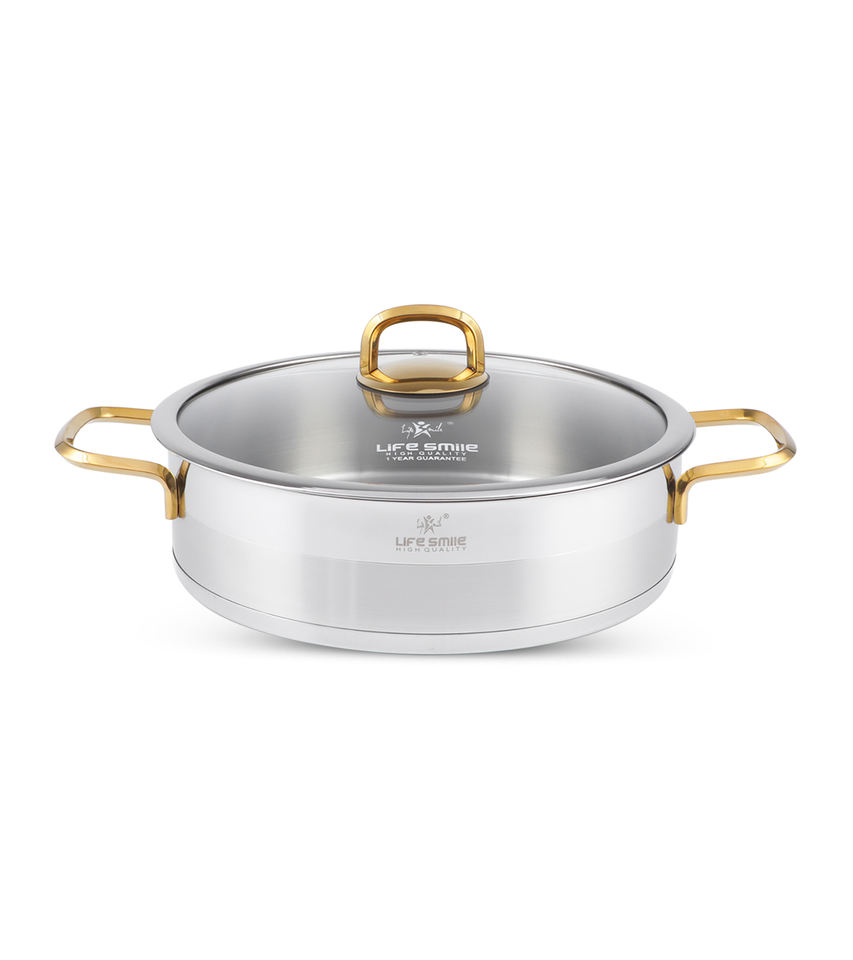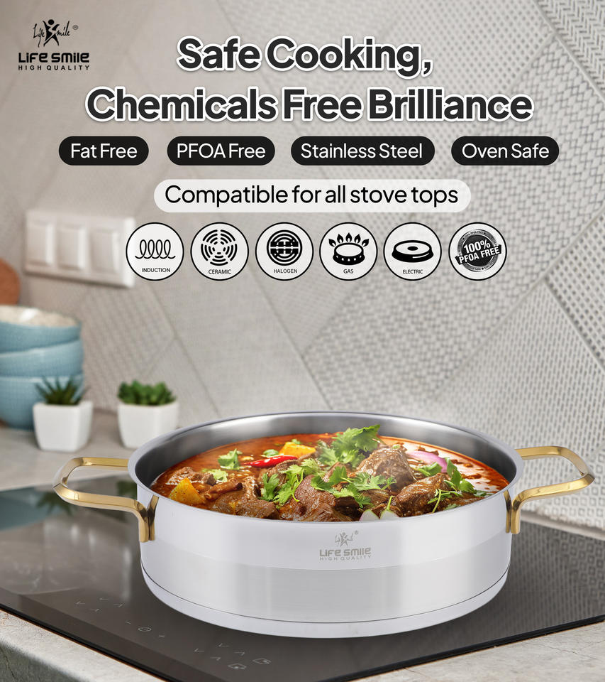 กระทะตื้น18/10สแตนเลสแท้พร้อม100% pfoe และ PFOS ปลอดสารพิษ