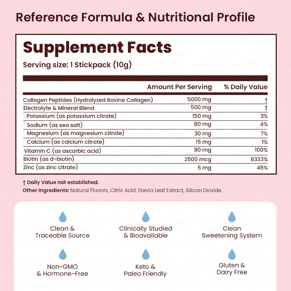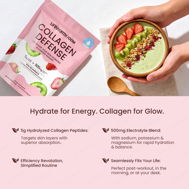 ไลฟ์เวิร์ธ โออีเอ็ม คอลลาเจน อิเล็กโทรไลต์ สติ๊กแพ็ค 5 กรัม คอลลาเจนไฮโดรไลซ์ + อิเล็กโทรไลต์ 500 มก. เหมาะสำหรับผู้ทานวีแกน พร้อมรับผลิตแบบ Private Label