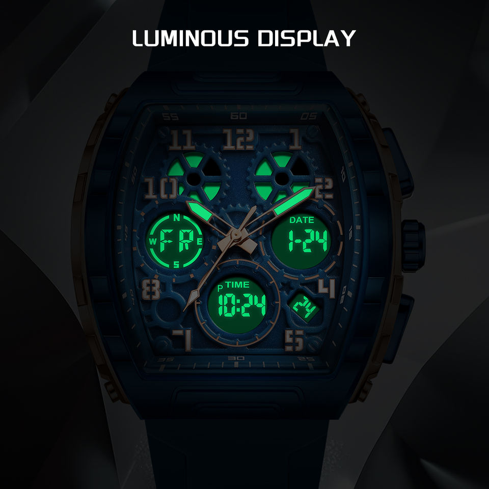 นาฬิกาข้อมือซิลิโคน FB0096อเนกประสงค์ทรงสี่เหลี่ยมผืนผ้ากันน้ำพร้อมกล่องของขวัญ