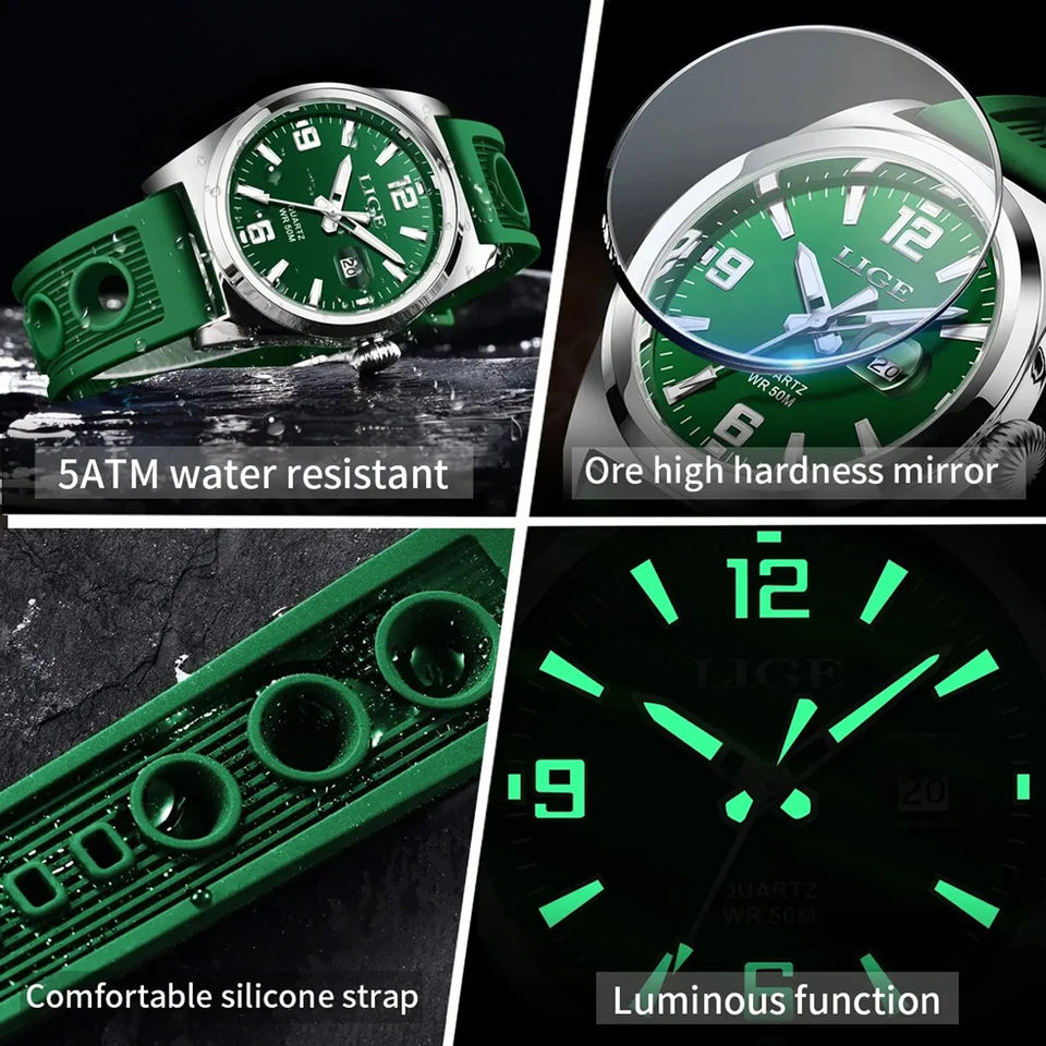 LIGE Fashion Brand Luxury Watch Men Silicone Sports Watches Men's Quartz Chronograph Male Clock Relogio Masculino