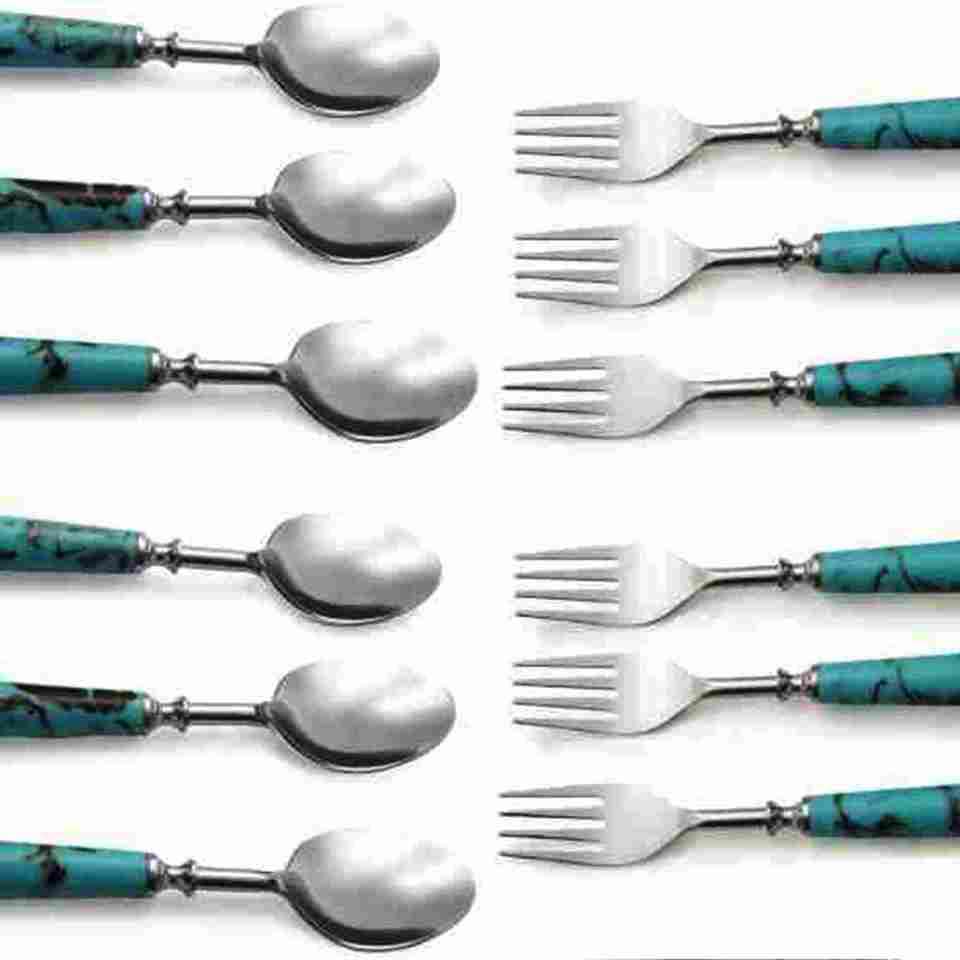 ชุดช้อนสลัดโลหะแบบโบราณ2ชิ้นทำด้วยมือสีฟ้าและสีดำ