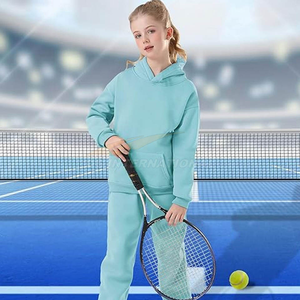 ชุดวอร์ม2ชิ้นสำหรับเด็กผู้หญิงเด็กผู้ชายชุดเล่นกีฬาเสื้อมีฮู้ดสำหรับเด็กเสื้อกันหนาวกางเกงจ็อกเกอร์ผ้าคอตตอน100% สีฟ้าอ่อน