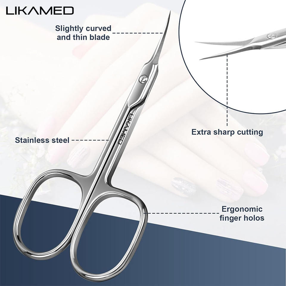 Likamed กรรไกรทำเล็บมืออาชีพแบบบางพิเศษใบมีดโค้งพิเศษสำหรับดูแลเล็บกรรไกรตัดหนังกำพร้าสำหรับผู้หญิงและผู้ชาย