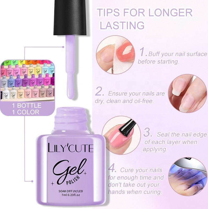 Lilycute เจลทาเล็บวีแกนขนาด7มล. สี125เจลทาเล็บพร้อมโลโก้ของคุณ
