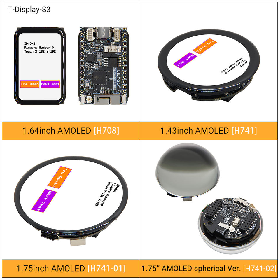Lilygo บอร์ดพัฒนา ESP32-S3 T-Display-S3ขนาด1.43นิ้ว1.64นิ้ว1.75นิ้ว, โมดูลไร้สาย5.0บลูทูธสำหรับ Arduin