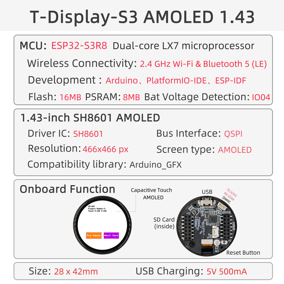 เลือกเลยสเปค: ESP32 AMOLED ขนาด 1.64 นิ้ว [H708]