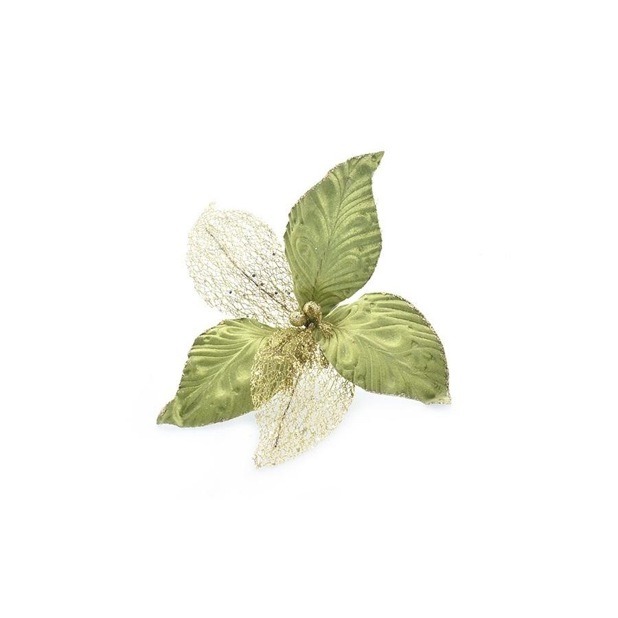 ดอกไม้กำมะหยี่สีเขียวมะนาว ก้านสั้น ประดับด้วยกลิตเตอร์สีทอง