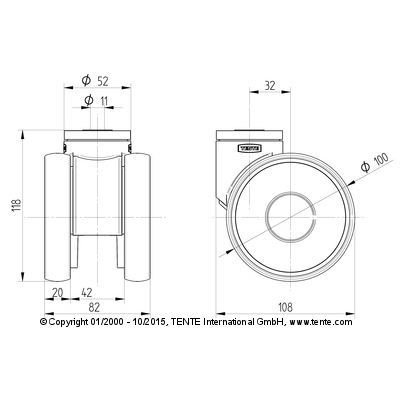 ล้อเลื่อนเฟอร์นิเจอร์ม้วนออกแบบ LINEA5940UAP100P30-11 RAL9002