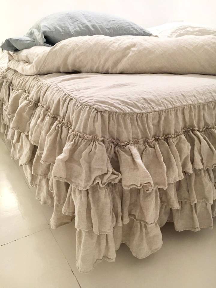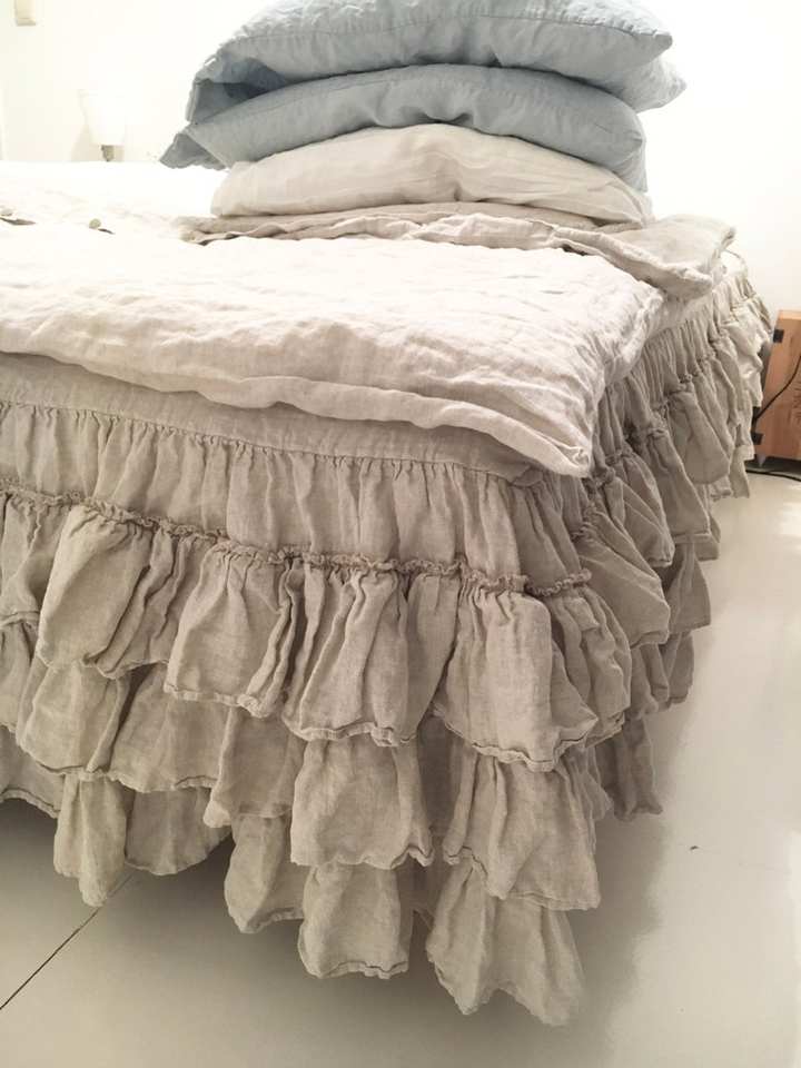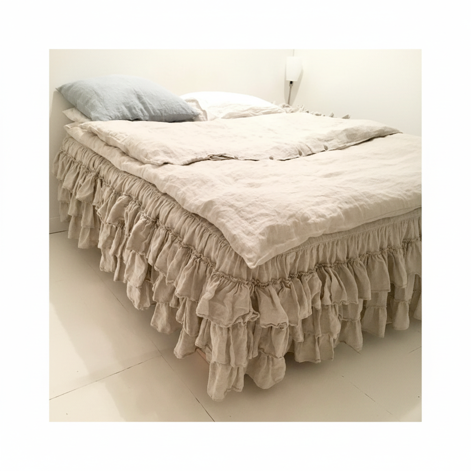 กระโปรงคลุมเตียงผ้าลินินแบบสามชั้นจับจีบกระเพื่อมขนาดเตียงคู่สำหรับโรงแรม