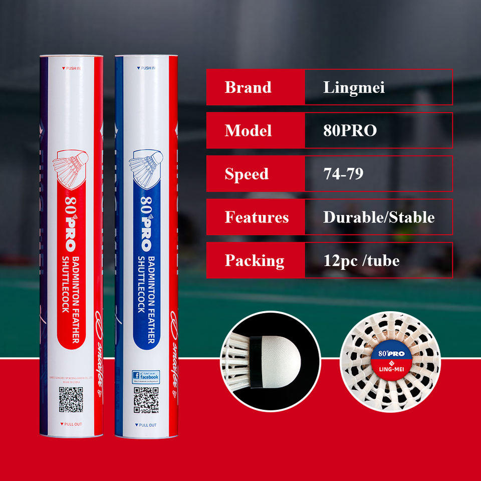 ลูกขนไก่แบดมินตัน LING-MEI 80 BWF (12 ลูก) ขนห่านแท้ ยี่ห้อ LING MEI 80 LINGMEI จากประเทศจีน สำหรับการแข่งขันระดับนานาชาติ