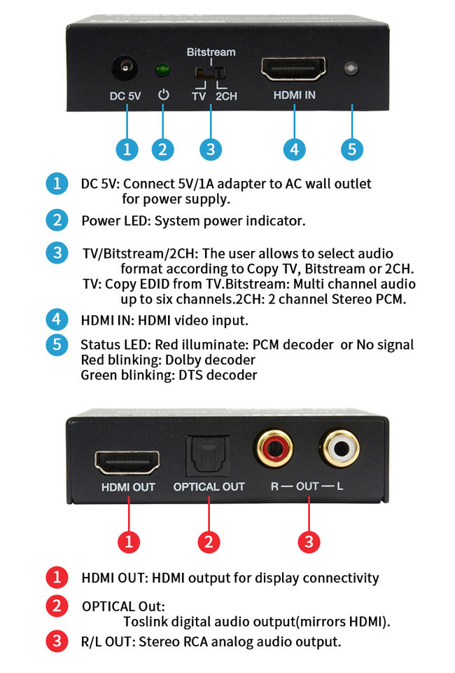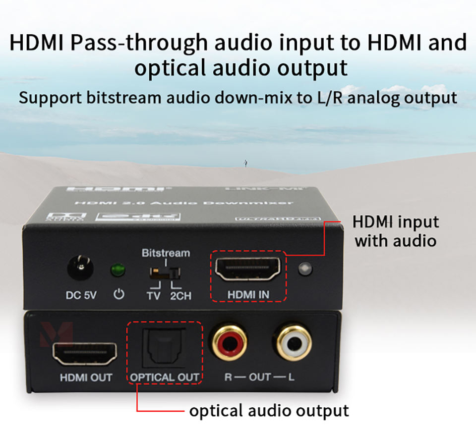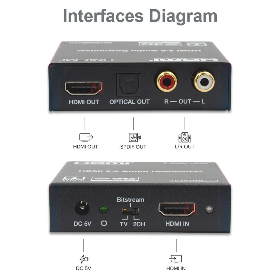 LINK-MI 4K60Hz HDMI 18Gbps เครื่องแยกสัญญาณเสียงที่มีสัญญาณเสียงรองรับออปติคอลหรือ L/R ระบบเสียงอะนาล็อกและ CEC PASS-Through