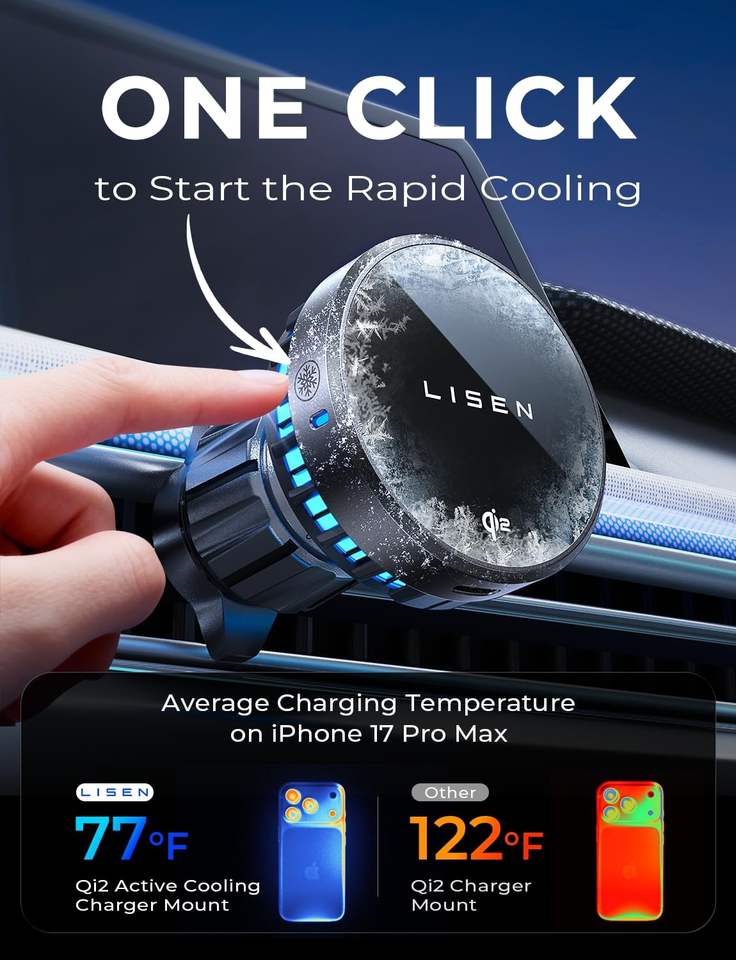 ที่ชาร์จไร้สายในรถยนต์ LISEN 15W Qi2 แบบแม่เหล็ก ชาร์จเร็ว พร้อมระบบระบายความร้อนด้วยเซมิคอนดักเตอร์ ที่วางโทรศัพท์สำหรับติดตั้งบนแผงหน้าปัดรถยนต์