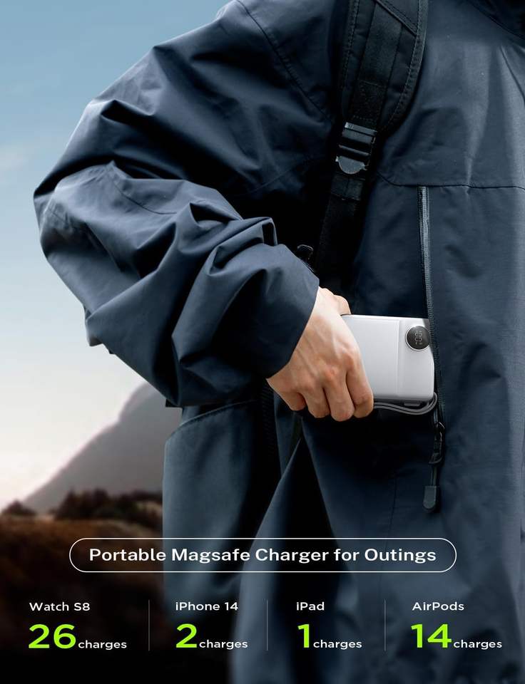 คุณสมบัติ:สายเคเบิลในตัว, ดีไซน์บาง, ความจุ 10000mAh, แม่เหล็กแบบสแน็ปออน