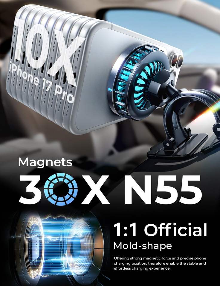 ชื่อสินค้า:แท่นชาร์จไร้สายในรถยนต์แบบแม่เหล็ก Qi2 15W พร้อมระบบระบายความร้อน